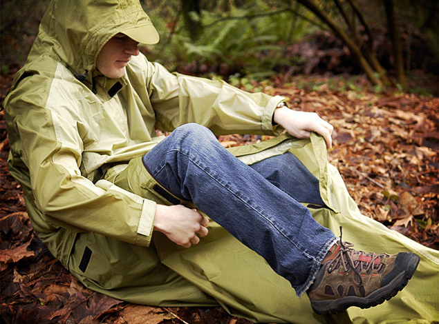 When is a jacket not a jacket? When its a sleeping bag and tent as well. The JakPak ($250) combines a waterproof rain jacket, sleeping bag, and tent into a single piece of clothing, made from 3.1 oz urethane coated ripstop nylon, with the sleeping bag folding down from the inside of the jacket's rear, the tent folding out of a pocket on the back, and your traditional hiking backpack looking forlorn as its reason for being slips away.